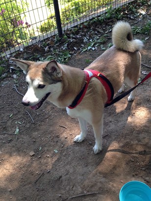 以前は車が嫌いで乗るたびによだれを垂らしてぐったりしていたのですが、公園に出かけるようになって車嫌いも解消したようです。