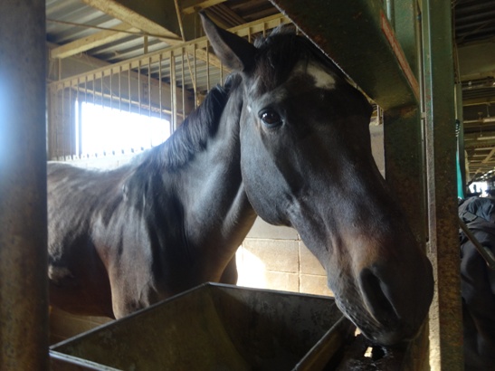写真は、かつて皇帝と呼ばれた七冠馬シンボリルドルフの子です。額の白い模様がルドルフによく似ています♡ 他にもメジロライアンやエルコンドルパサーなど有名馬の二世も多くいます。でも残念ながら、ほとんどが上級者向けの馬なので、私は騎乗できません(泣)