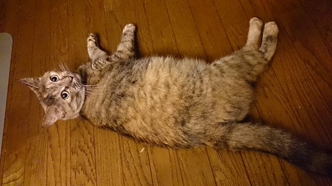 たまにしか会えないので、「あそぼ~!抱っこしよ~!」とテンション高めの私でしたが、ミミちゃんはエアコンがよく当たる涼しい床の上でゴロゴロ、だら~り。