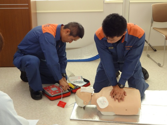 6月20日に上尾消防署の職員の方にお越しいただき、院内でAED講習会を行いました。 AEDの使い方や救急対応の方法を丁寧に教えていただきました。 万が一の際に備えて、心構えができたように思います。 講習会後は消防車の中も見せていただき、貴重な体験となりました。 上尾消防署の方々、お忙しい中ご協力ありがとうございました。