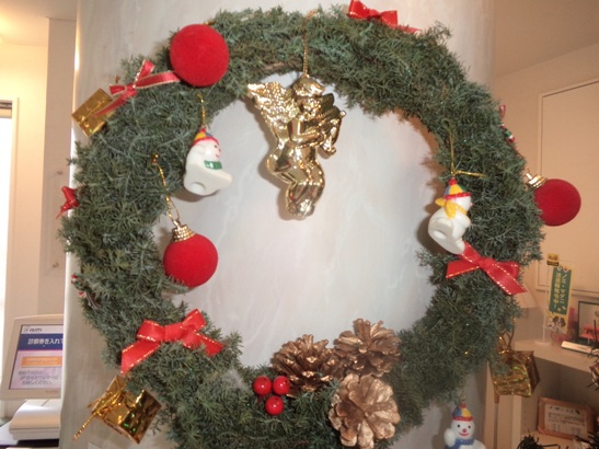 またとなりの柱には、患者様より頂いたとても素敵なリースも飾らせて頂いています(^^♪