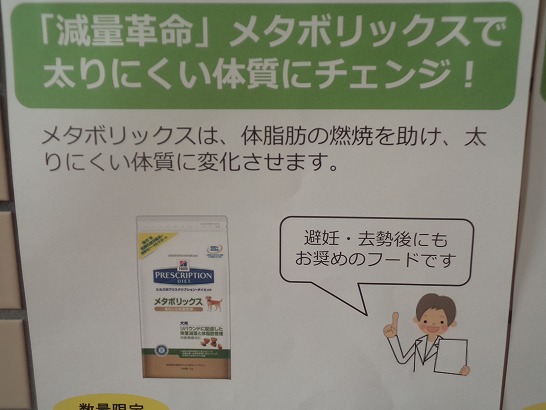内容は肥満犬にメタボリックス1㎏プレゼントです。