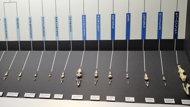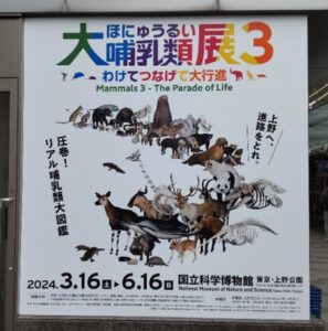 先日、上野の国立科学博物館へ行って来ました。期間限定で開催されている特別展「大哺乳類展3」を観てきました。今回は大哺乳類展の第3弾で、私は1も2も観ています。今回もたくさんの発見があり楽しかったです。いちばん驚いたのは、太古の化石やDNA因子の解析でカバとクジラの仲間は近縁どころか姉妹関係にあることがわかり、現在では「偶蹄目」ではなく「鯨偶蹄目」という名称の使用が世界的に支持されているそうです。偶蹄目といえば牛や鹿、キリンなどですが、それがクジラやイルカと近縁で同じ仲間とは、科学の進歩は真実を次々と明らかにしていくのですね。驚きです。