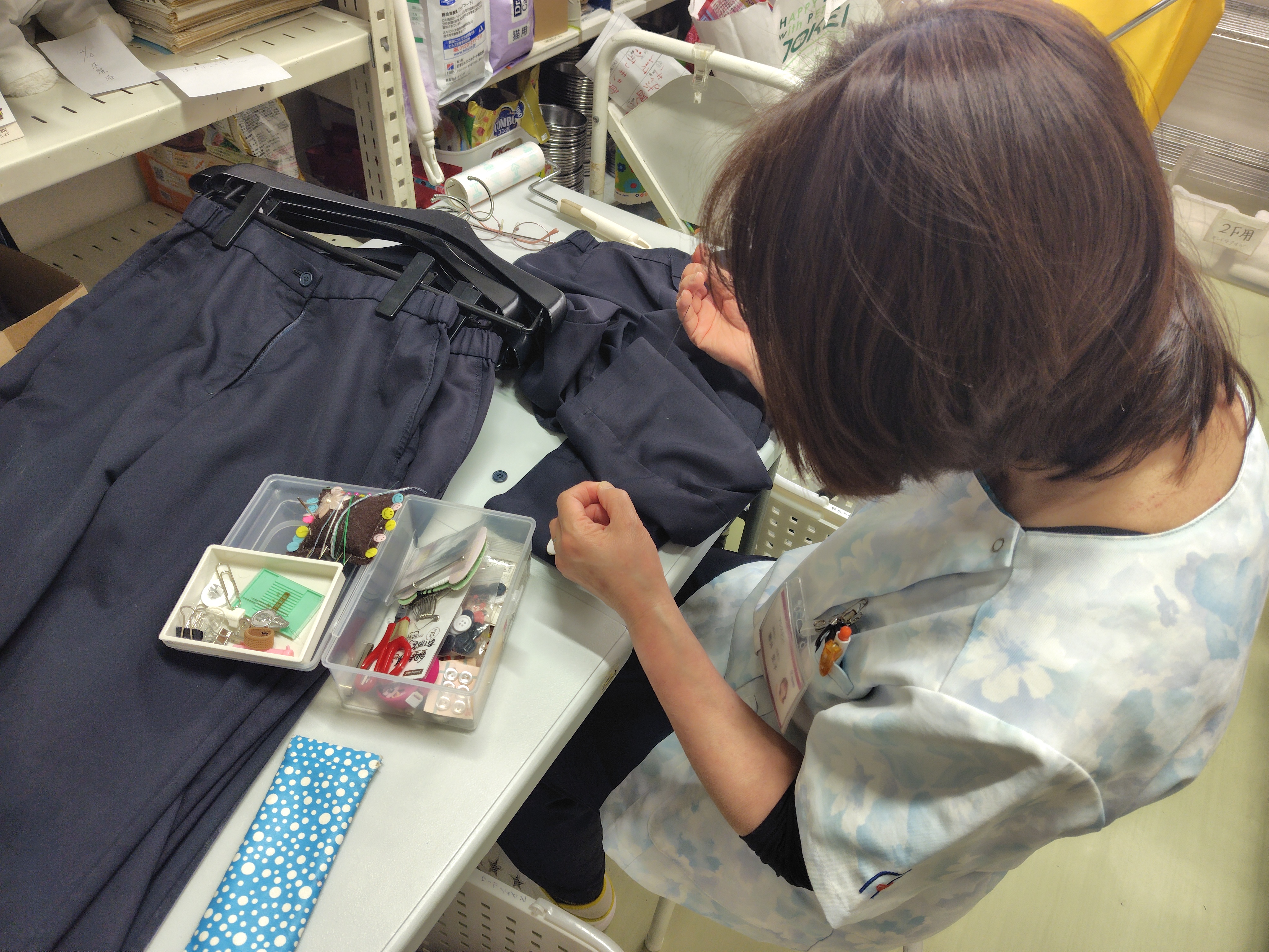 スタッフのユニフォームのほつれ修理も丁寧におこなってくれます。とても心強いです。