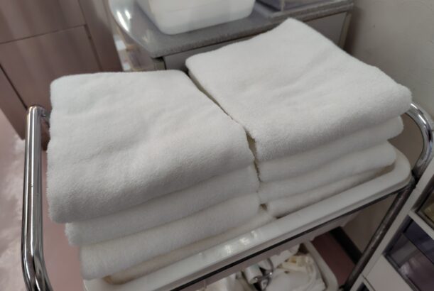 いつも診察で使用している真っ白なタオルはアシスタントさんたちのおかげです。