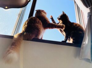 真下は保護した2匹の猫さんも飼っています。別々に保護されましたがとても仲良し。