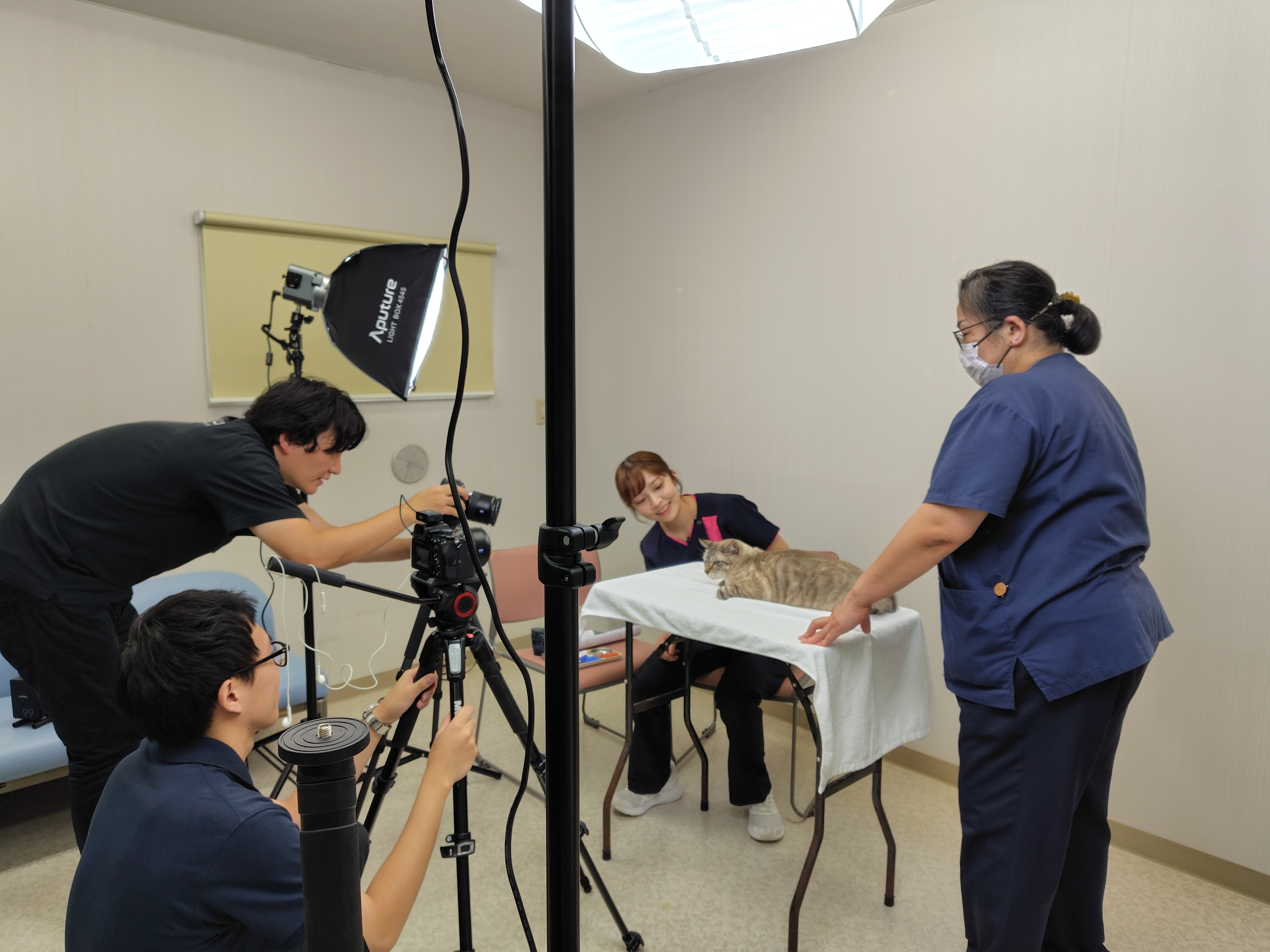 先日、共立製薬株式会社様からの依頼で犬と猫の歯みがきについての動画撮影が当院で行われました。