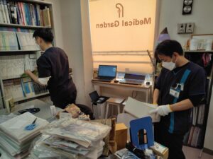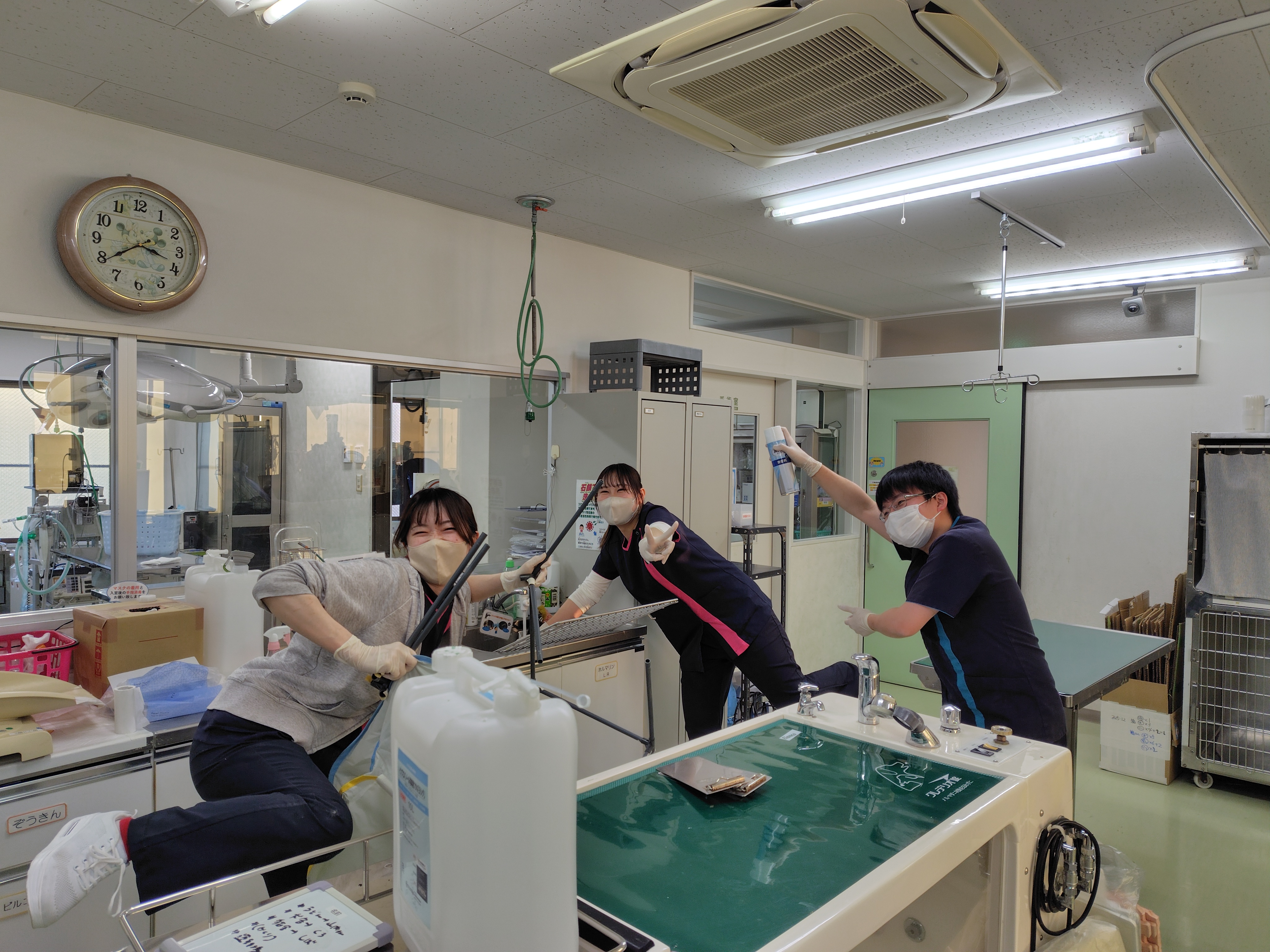 院内各所、割り振られた場所を徹底清掃です。使いやすいように物の配置・配列を変えたり、汚れている物はきれいに拭いて清潔に保てるようにと、みんなそれぞれが使う人つまりスタッフみんなを思い、掃除に励みました。