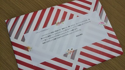先日、とっても印象深い出来事がありました。院長婦長からのサプライズプレゼントです。緊急事態宣言中、感染予防に努めつつ勤務したスタッフを労い、ひとりひとりにプレゼントを用意してくれました。日頃からスタッフ皆を大切に思い、気づかってくれる院長婦長。今回も胸が熱くなりました。この病院のスタッフで良かった、これからも頑張ろうと向上心のあふれた瞬間です。