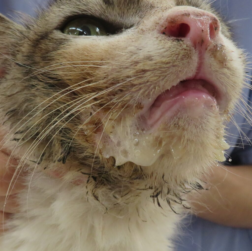 - 口元や前足がよだれで汚れている など…